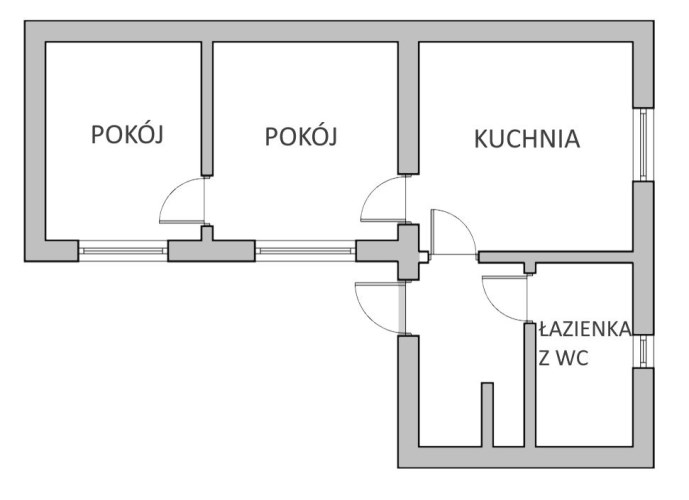 Dwa pokoje, kuchnia (pomieszczenia przejściowe), łazienka z wc, przedpokój o łącznej powierzchni 65mkw.