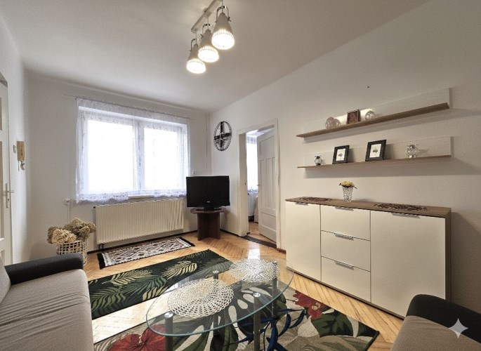 Dwa pokoje, kuchnia (pomieszczenia przejściowe), łazienka z wc, przedpokój o łącznej powierzchni 65mkw.